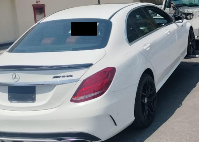6. Un auto Mercedes Benz AMG de lujo con permiso provisional, y