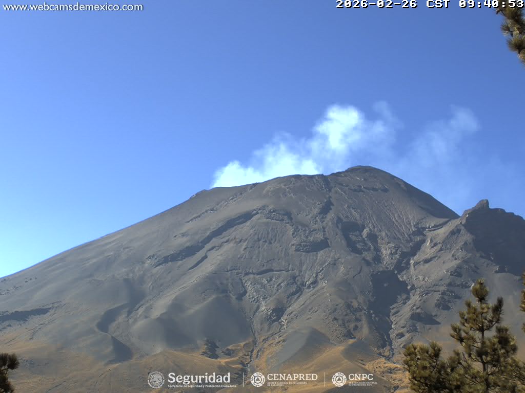 Desde las primeras horas de la mañana y al momento de este reporte, se observa una emisión constante de vapor de agua y gases volcánicos en dirección suroeste del cráter.