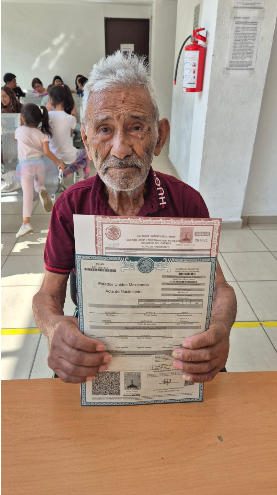 La Dirección General del Registro Civil, adscrita a la Secretaría de Gobierno, a cargo de Sergio Israel González Macedo, otorgó identidad jurídica al señor Eleuterio, de 91 años de edad, originario del municipio de Temixco, mediante la entrega gratuita de su acta de nacimiento.
