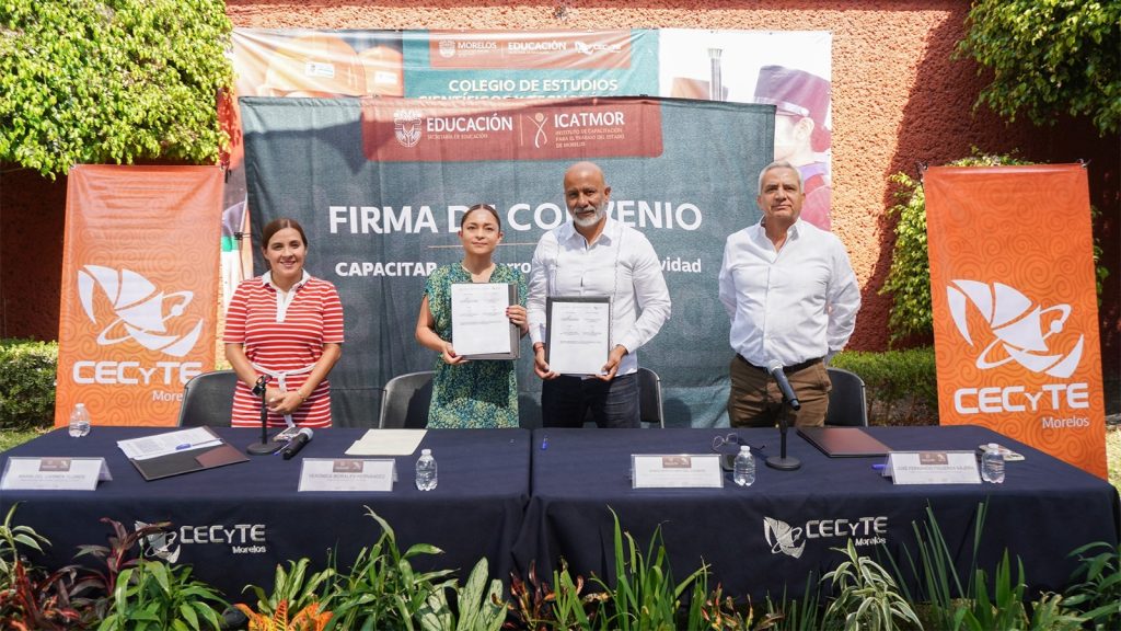 El Gobierno de “La tierra que nos une”, a través de la Secretaría de Educación, consolida la preparación técnica en la entidad, a través de la firma de un convenio de colaboración entre el Colegio de Estudios Científicos y Tecnológicos (CECyTE) Morelos y el Instituto de Capacitación para el Trabajo del Estado de Morelos (Icatmor), con esta alianza se asegura que las y los estudiantes accedan a certificaciones y cursos que detonan su talento.