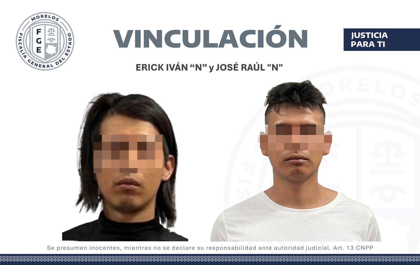 José Raúl “N” y Erick Iván “N” fueron ubicados y asegurados por elementos de la Agencia de Investigación Criminal (AIC), en las colonias 10 de Abril y El Zapatito, en los municipios de Zacatepec y Jojutla, para llevarlos ante el juez que lo vinculó a proceso.