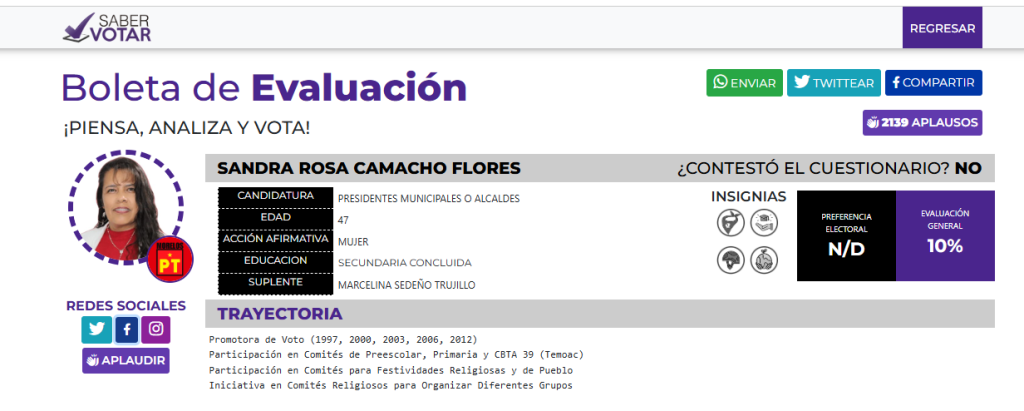 Temoac.-La ex candidata del Partido del Trabajo a la presidencia municipal de Temoac Sandra Rosa Camacho Flores fue asesinada esta tarde.