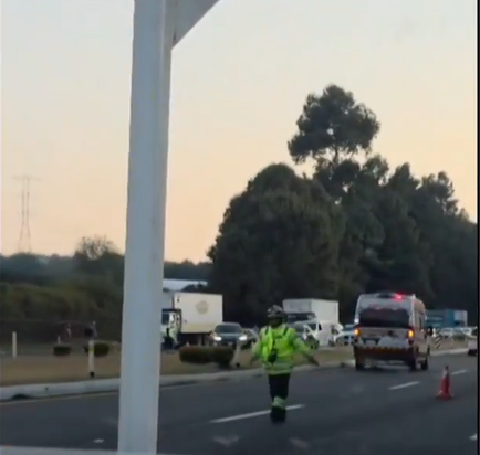 En la autopista México-Cuernavaca en el km 38, dirección CDMX se reporta esta tarde cierre a la circulación por atención de incidente (caída de cables de alta tensión).