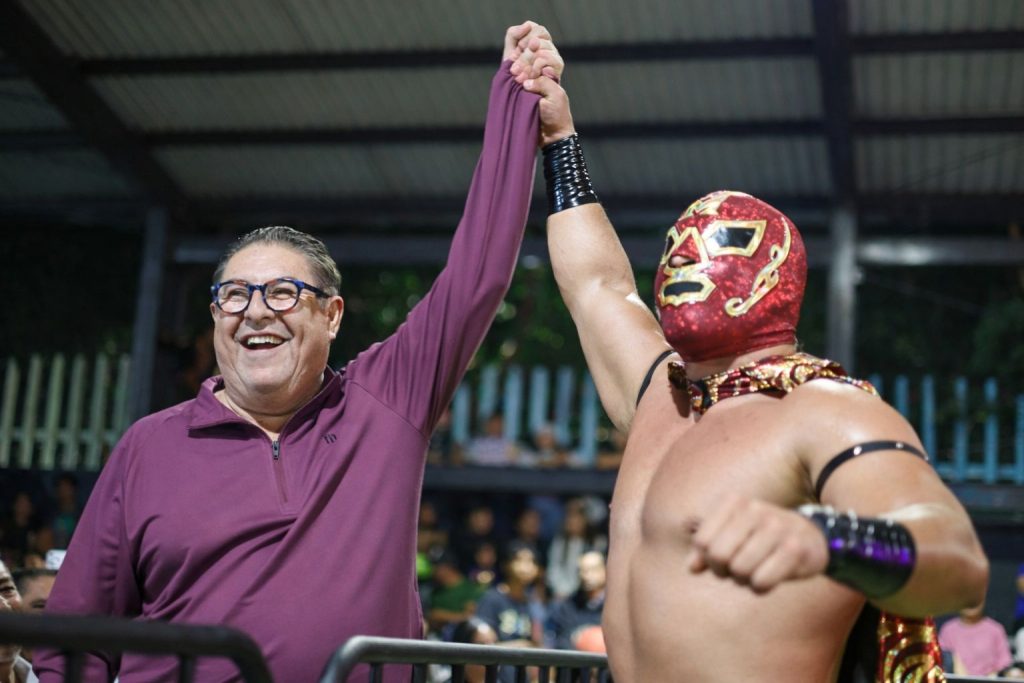 Cuernavaca, Morelos; — El senador de Morena por Morelos, Víctor Mercado Salgado, participó como invitado en la función de KeBuenas Luchas realizada el sábado por la tarde en la colonia Lagunilla, donde convivió con vecinas y vecinos, así como con líderes de colonias de la capital morelense.
