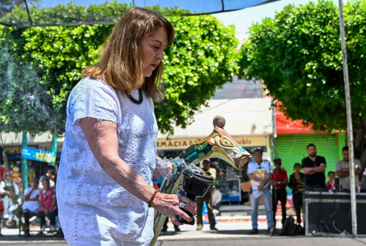 Durante el evento, se realizó el ritual prehispánico de agradecimiento a los cuatro elementos: aire, agua, tierra y fuego; en donde participaron la mandataria estatal; Víctor Manjarrez Aparicio, presidente de Bienes Comunales; José Luis Urióstegui Salgado, presidente municipal de Cuernavaca; la ayudante municipal, Laura Araceli Rendón, y el fiscal de la parroquia de Chamilpa, Genaro Román Rodríguez.