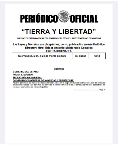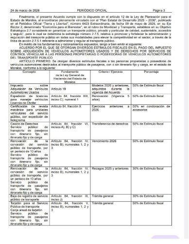 El acuerdo, firmado por la gobernadora Margarita González Saravia, fue publicado en el periódico oficial “Tierra y Libertad” y establece que estos beneficios estarán vigentes del 24 de marzo al 30 de abril de 2026.