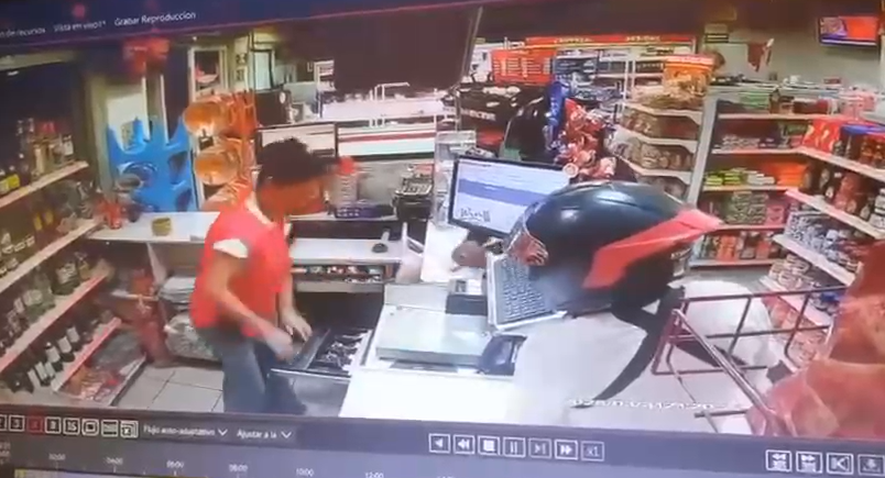 Un video compartido en redes sociales muestra que ambos portaban cascos negros para ocultar su rostro. Uno vestía playera blanca y pantalón deportivo, con un cabestrillo en el brazo, mientras que su cómplice llevaba ropa completamente negra.