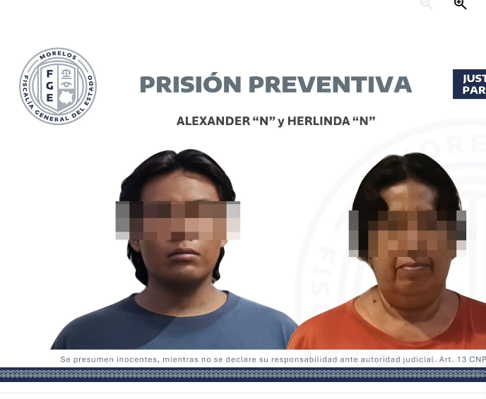 La Fiscalía Especializada en Desaparición Forzada de Personas, a través del agente del Ministerio Público (MP) especializado imputó a Herlinda “N” y Alexander «N» delitos vinculados con la desaparición de personas y desaparición cometida por particulares agravada, en consecuencia, les fue impuesta la medida cautelar de prisión preventiva.